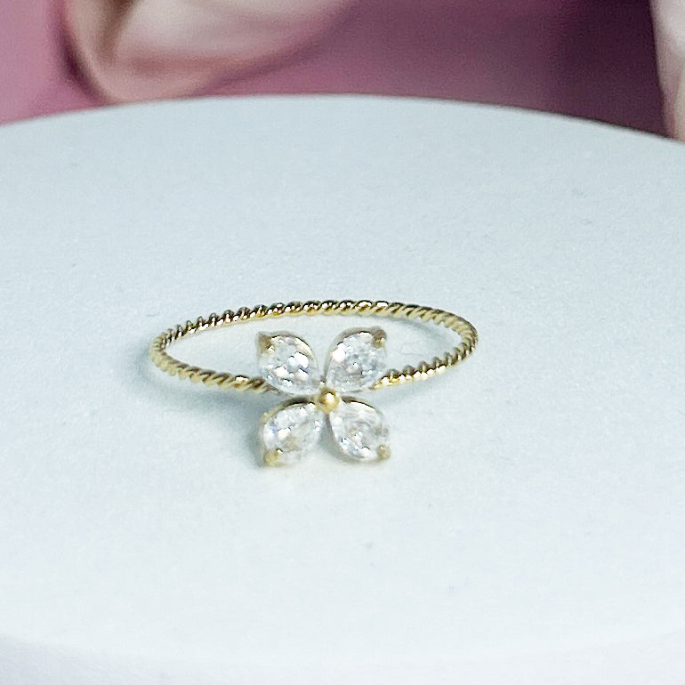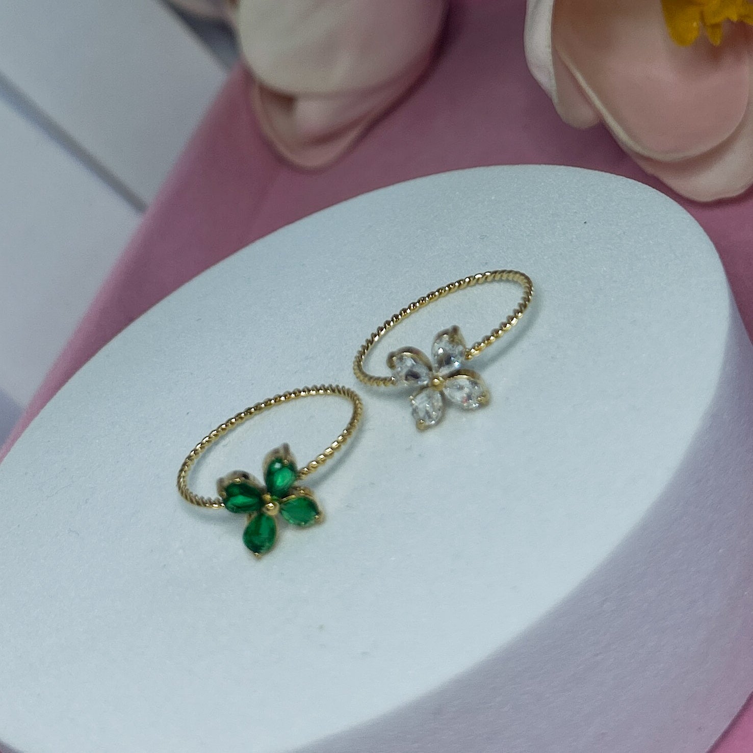 Delicada como una flor en primavera, Bloom resalta con zirconia brillante en tonos verde o cristal, sobre acero inoxidable dorado.